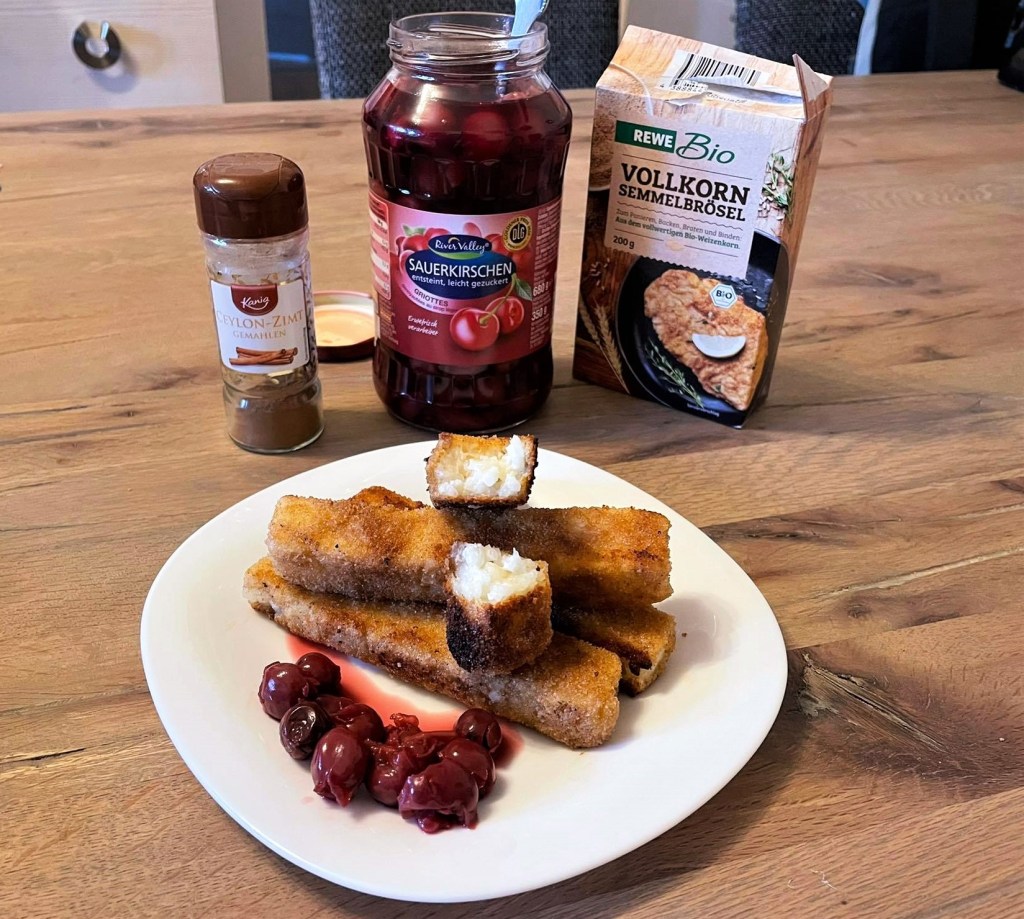 Für mich gehören zu den Milchreisschnitten auf jeden Fall Beeren oder Obst. Egal ob Kirschen, Erdbeeren oder Apfelmus, die fruchtige Note rundet das Ganze herrlich ab. Wer die Schnitten bereits ausprobiert hat und etwas variieren möchte, der kann ganz einfach die Panade pimpen indem man gemahlene Nüsse oder Kokosflocken in die Panade mit einarbeitet. Für die Panade gibt es generell 2 Möglichkeiten: eine klassische Semmelpanade oder eine crunchy Cornflakes Panade. Hier könnt ihr ganz nach Geschmack ausprobieren was euch besser gefällt.