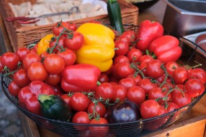 Tomaten waschen und halbieren. Zucchini waschen, Strunk entfernen und in grobe Stücke schneiden. Die Spitzpaprika waschen, entkernen und ebenfalls in grobe Stücke schneiden. Zwiebel schälen und grob würfeln. Knoblauch schälen. Das Gemüse in eine ofenfeste Form geben. Olivenöl dazugeben und gut durchmischen. Den Feta darauf legen. Die Form wandert nun bei 180° Heißluft für 25 Minuten in den vorgeheizten Ofen. Alles soll gut Farbe bekommen.