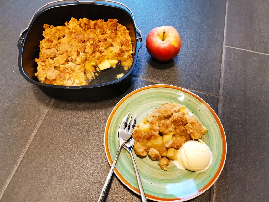 Frische, heiße Äpfel und knusprige Streusel. Was will man mehr? Der Apple Crumble ist sehr schnell gemacht. Heiß serviert mit Vanilleeis oder Ahornsirup bildet der Crumble den perfekten Abschluss für ein leckeres Menü oder aber auch den perfekten Begleiter zum nachmittäglichen Kaffee.