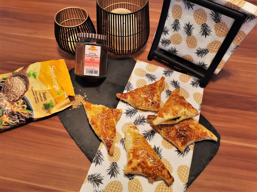 Anschließend wandern die Burekas auf mittlerer Schiene in den vorgeheizten Ofen und werden bei 200° C Ober-/ Unterhitze für 20-25 Minuten ausgebacken bis sie goldgelb sind. Fertig sind die leckeren Burekas.