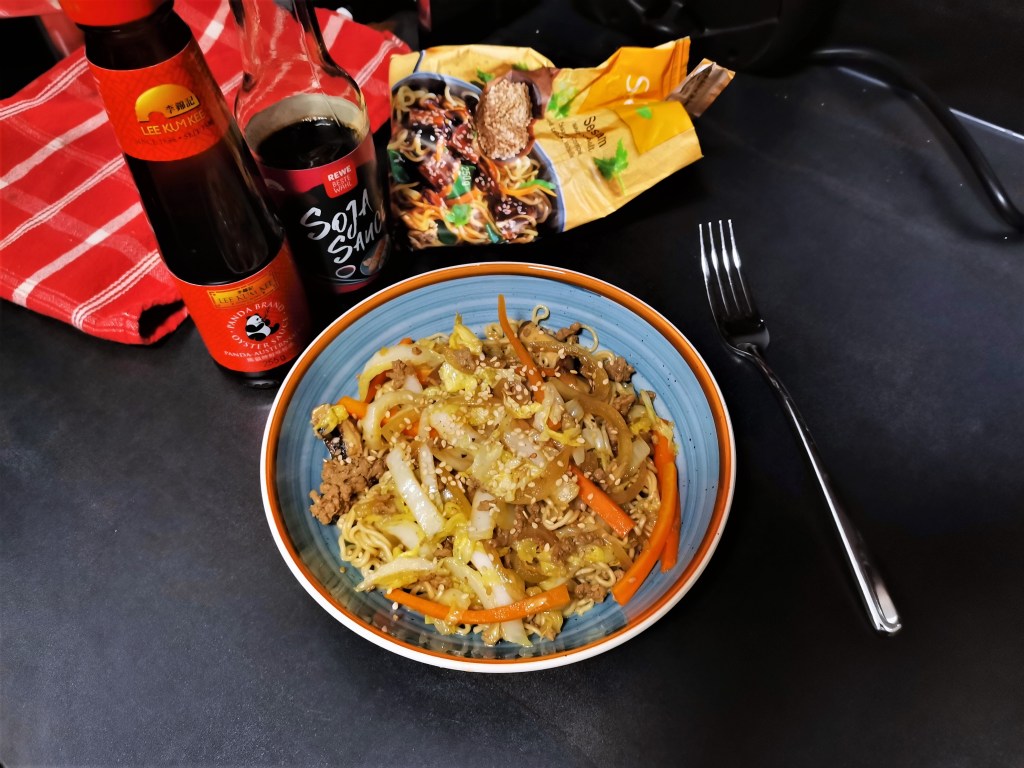 Bei der neuen Variante mit Chinakohl handelt es sich um eine saisonale Kreation. Denn jetzt im Winter ist Kohlzeit. Und da mich der Chinakohl beim Einkaufen so angelacht hat, ist er in den Einkauswagen und gemeinsam mit ein paar anderen Zutaten im Wok gelandet. Die Chinakohlpfanne an sich ist im Handumdrehen gemacht. Es braucht lediglich ein wenig Zeit, um das ganze Gemüse zu schnippeln. Aber die Mühe lohnt sich. Denn das Ergebnis ist ein leckeres, gesundes Gericht.