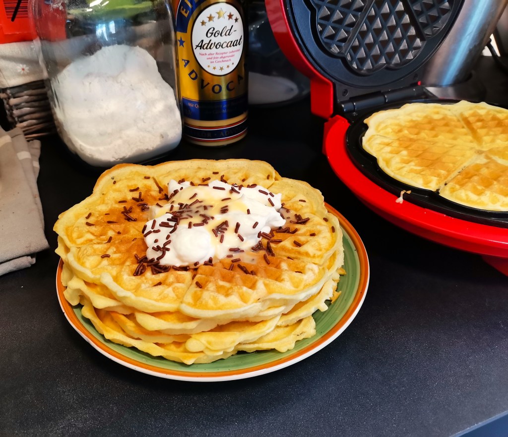 Was tun wenn hab nach Ostern noch etliche Flaschen Eierlikör rumstehen hat, den man pur einfach nicht mehr trinken kann? Na man backt einfach was leckeres damit. Die Eierlikör Waffeln bekommen durch den Likör ein richtig schönes Aroma. Außerdem sind die im Handumdrehen gezaubert. Resteverwertung kann so einfach sein.