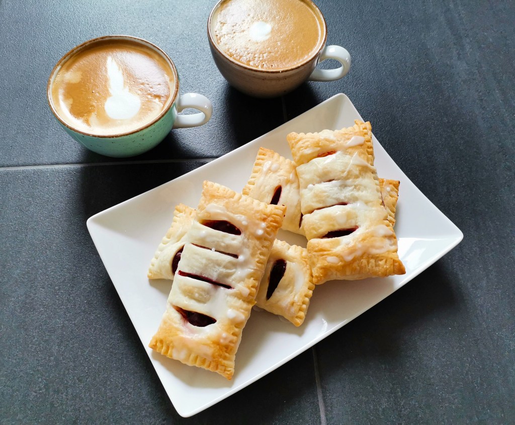 Den Deckel zuklappen und den Teig rundum mit einer Gabel aneinanderdrücken. Die Plunder wandern nun bei 200° auf mittlerer Schiene für 15 Minuten Ober-/Unterhitze in den Ofen. Anschließend auskühlen lassen. Wer will kann aus Puderzucker und Wasser bzw. Zitronensaft noch schnell einen Zuckerguss anrühren und die Plunder damit einpinseln. Frisch servieren und genießen.