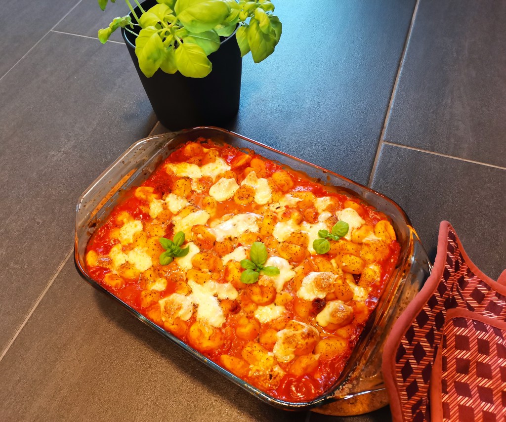 Die Tomaten-Gnocchi sind in gerade einmal 5 Minuten vorbereitet und brauchen anschließend nur 20 Minuten im Ofen. also in 25 Minuten ist alles fertig und 20 Minuten davon kann man sich entspannt auf der Couch niederlassen. Und trotzdem ist das Ganze super lecker. Was will man mehr nach einem stressigen Tag?