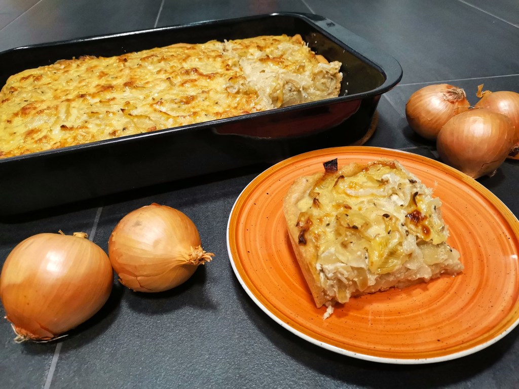Der Zwiebelkuchen hält sich übrigens prima über 2-3 Tage und lässt sich ohne Probleme im Ofen nochmal kurz „aufbacken“, sodass man ihn auch an Tag 2 oder 3 wie frisch genießen kann.